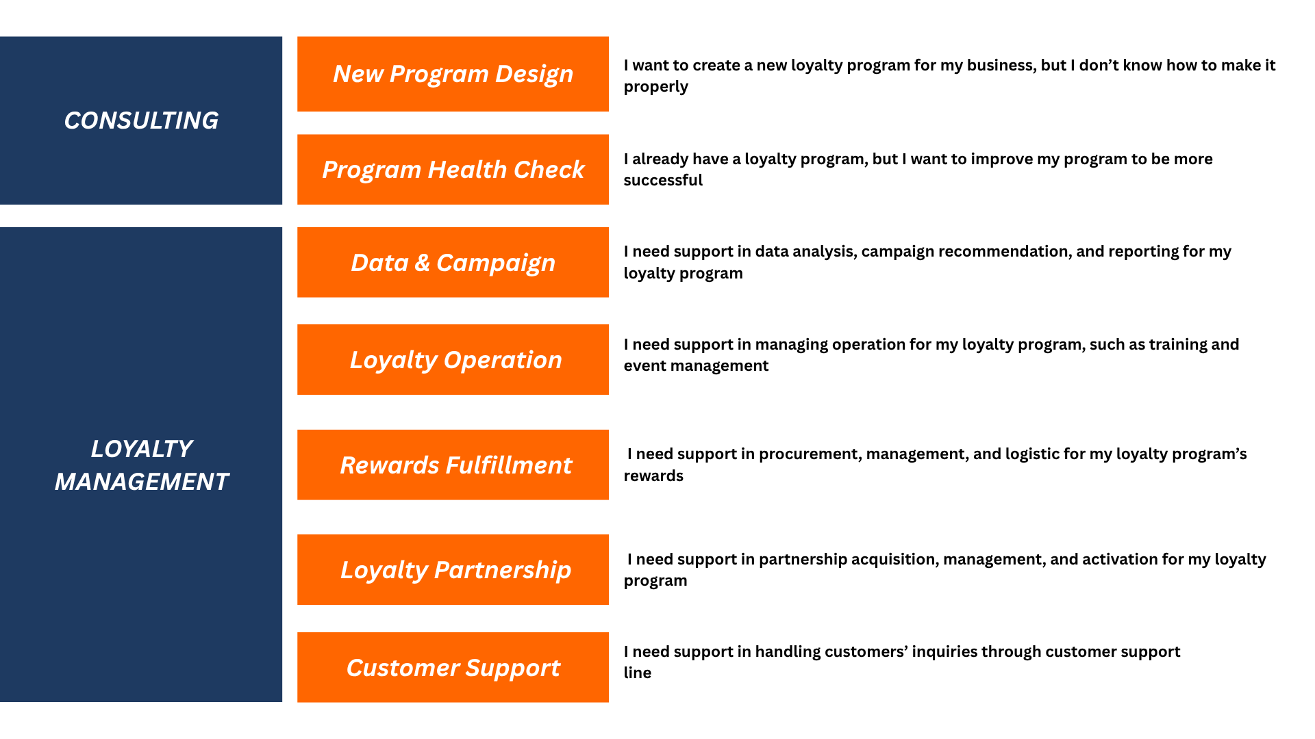 -Loyalty Program Design (Earning & Redemption Rate)-Customized loyalty engine-Customized mobile app.